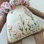 You will be able to make your own sweet, embroidered bear dolls from this pattern and tutorial that I have designed and used to make many of my dolls. Follow step by step using the suggested materials and detailed instructions and photos. The dolls body is made from linen cotton and polyester stuffing. No fancy equipment is needed to make this doll however you will need a sewing machine. Finished doll measures about 13 inches.